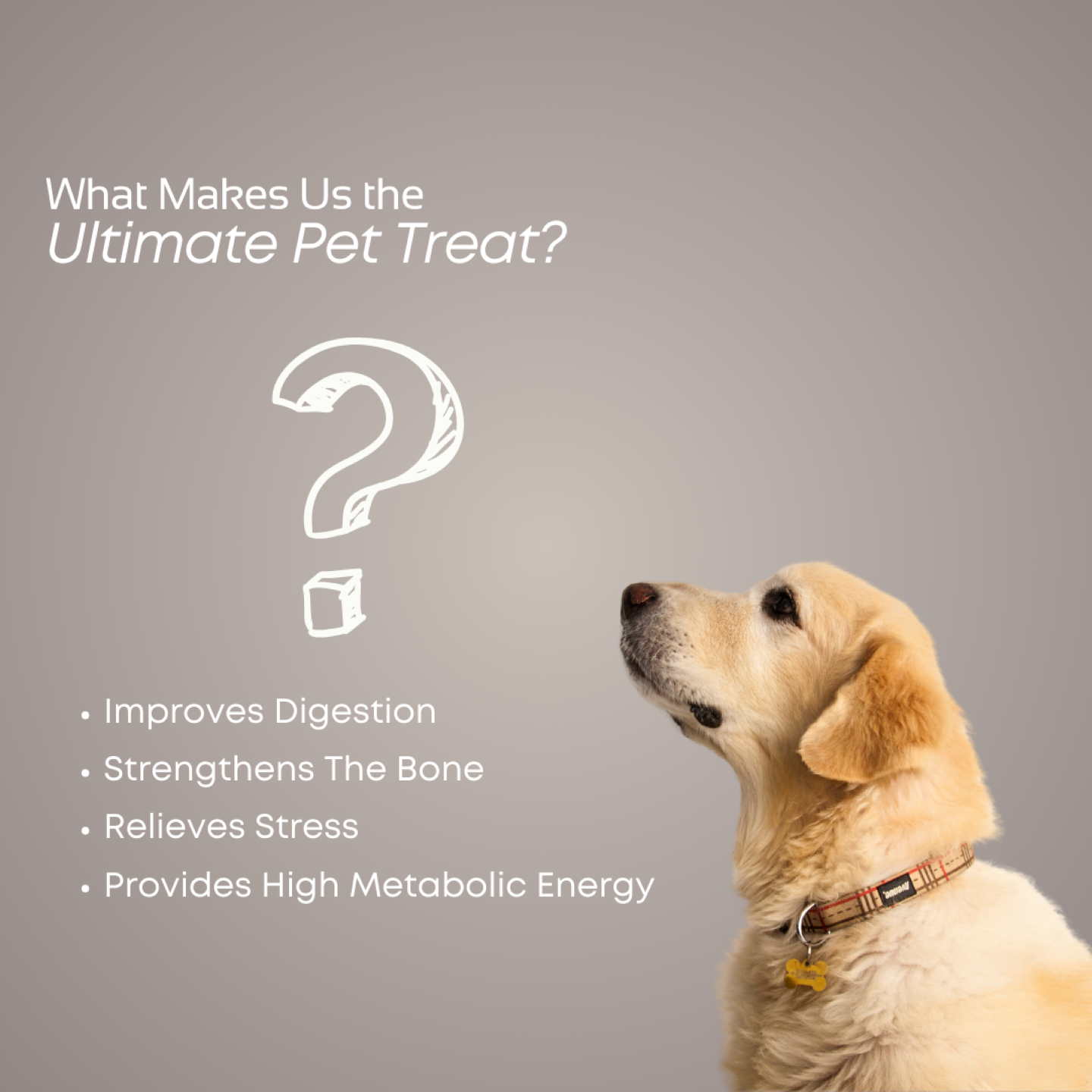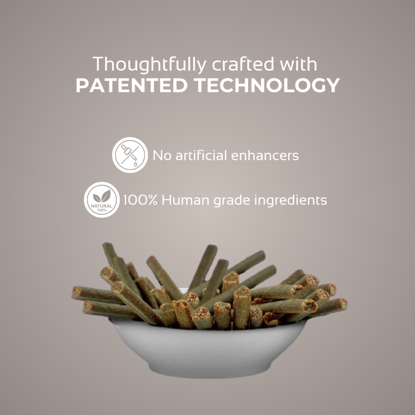 A brain-boosting treat loaded with antioxidants and nutrients.It emphasises the product as a "brain-boosting treat," which suggests that it offers cognitive benefits for pets. The mention of being "loaded with antioxidants and nutrients" is a strong selling point, implying that the product not only supports mental function but also contributes to overall health.
